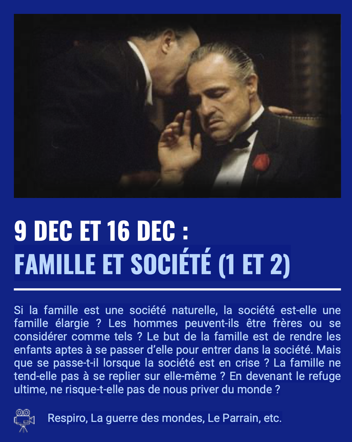 “Famille et société 1” Lundi 9 décembre à 19h au grand amphithéâtre de l’hôpital Sainte-Anne